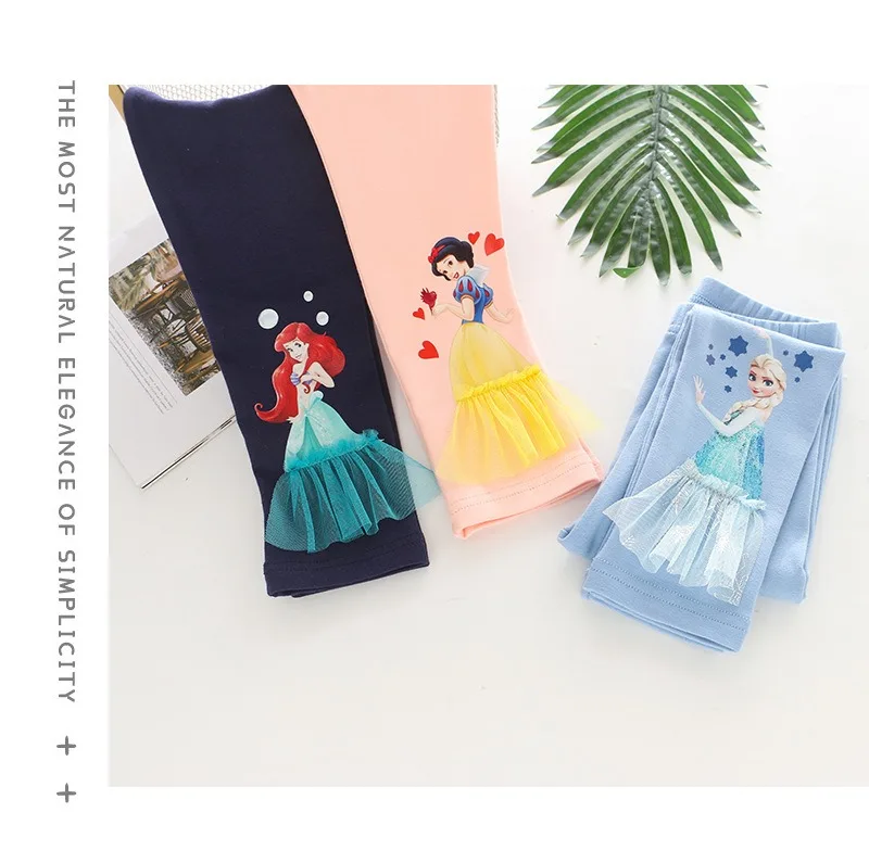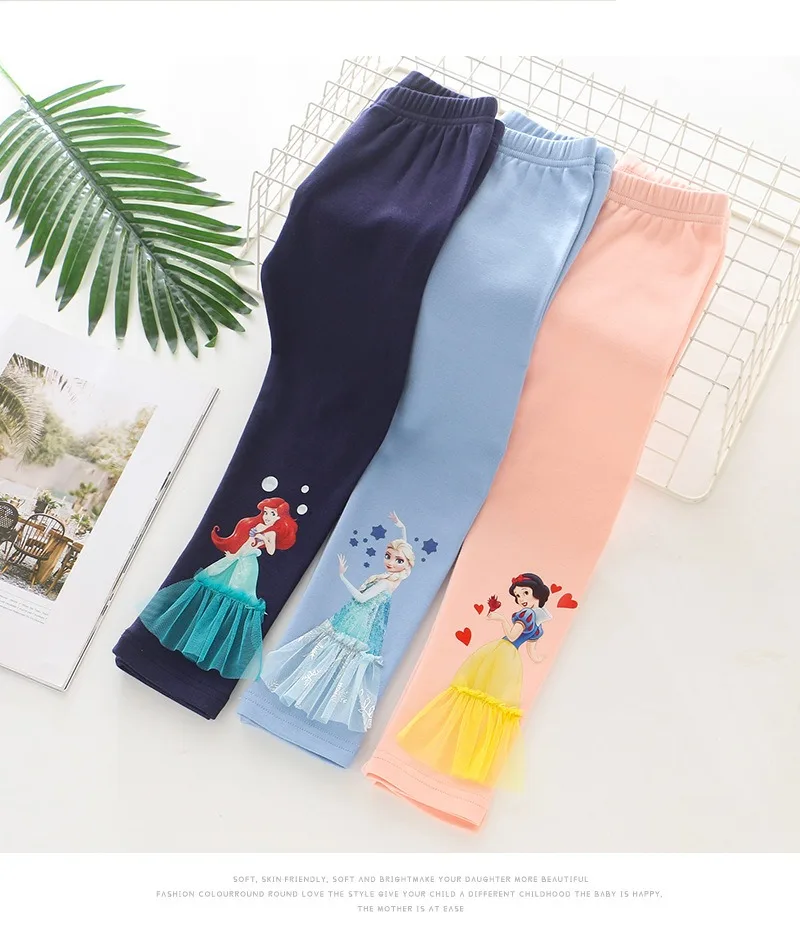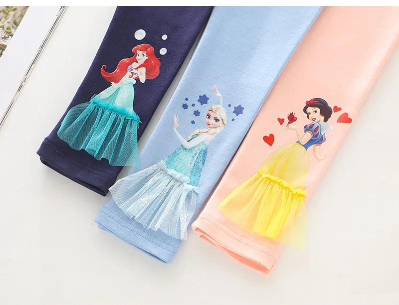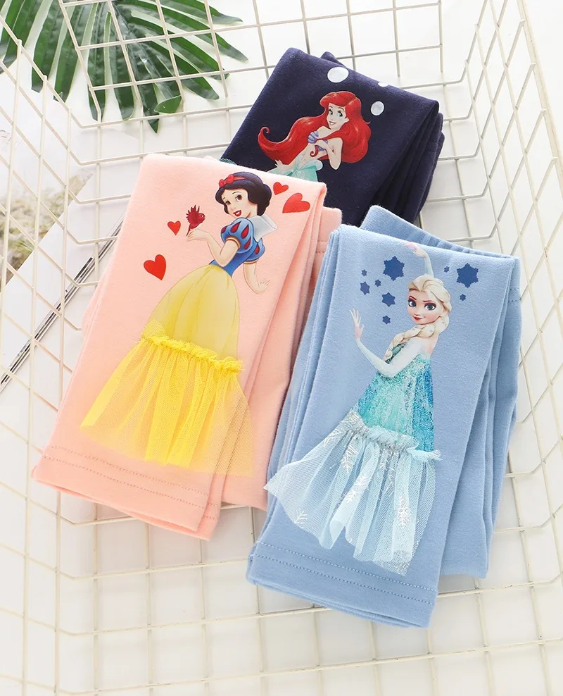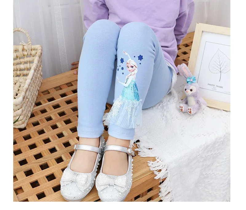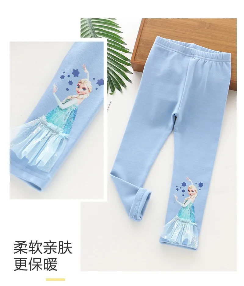 2025 Disney Girls Leggings Quality Cotton for Children Frozen Anna Elsa Autumn Baby Girl Pink Blue Trouser Kids Pants Cartoon