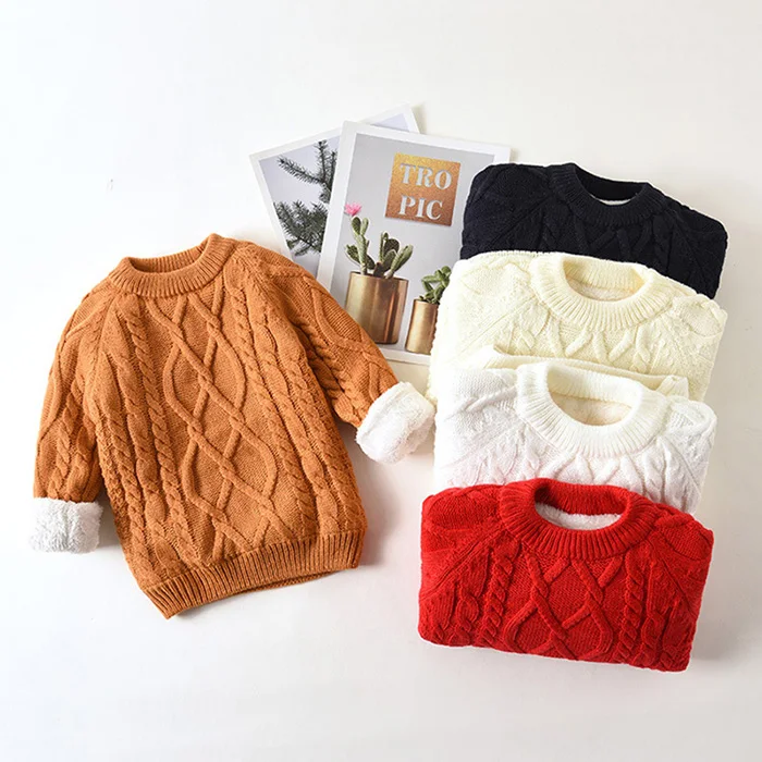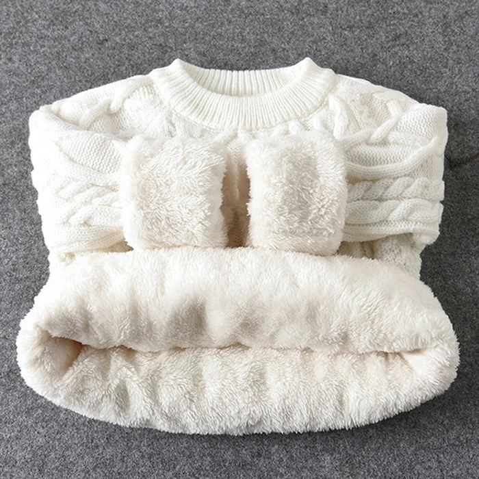 Autumn Winter Children Clothing Baby Girls Boys Thicken Plush Knitted Pullover Tops 1-8Yrs Kids Casual Loose Pullover Sweater