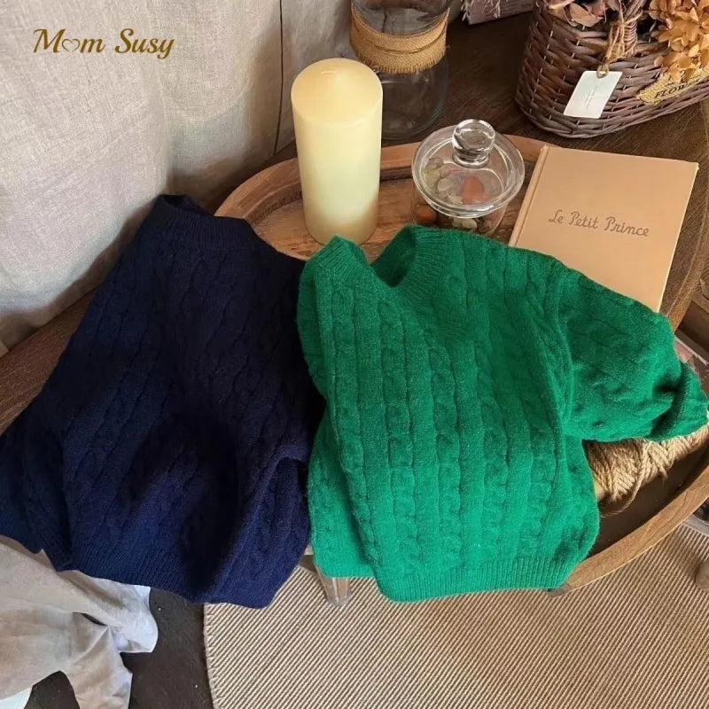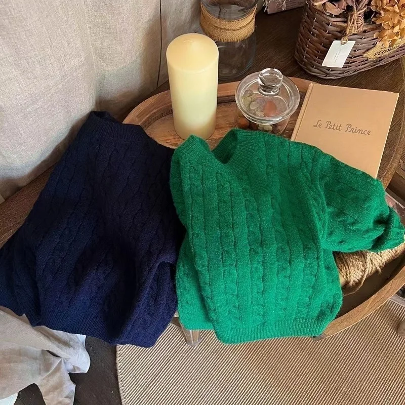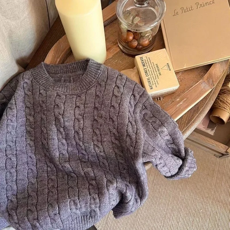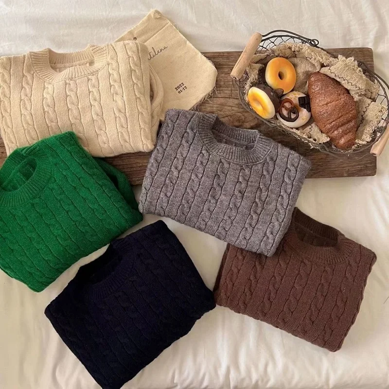 Baby Boy Girl Knitted Sweater Twisted Stripes Toddler Child Solid Color Sweater Pullover Spring Autumn Baby Clothes 2-10Y