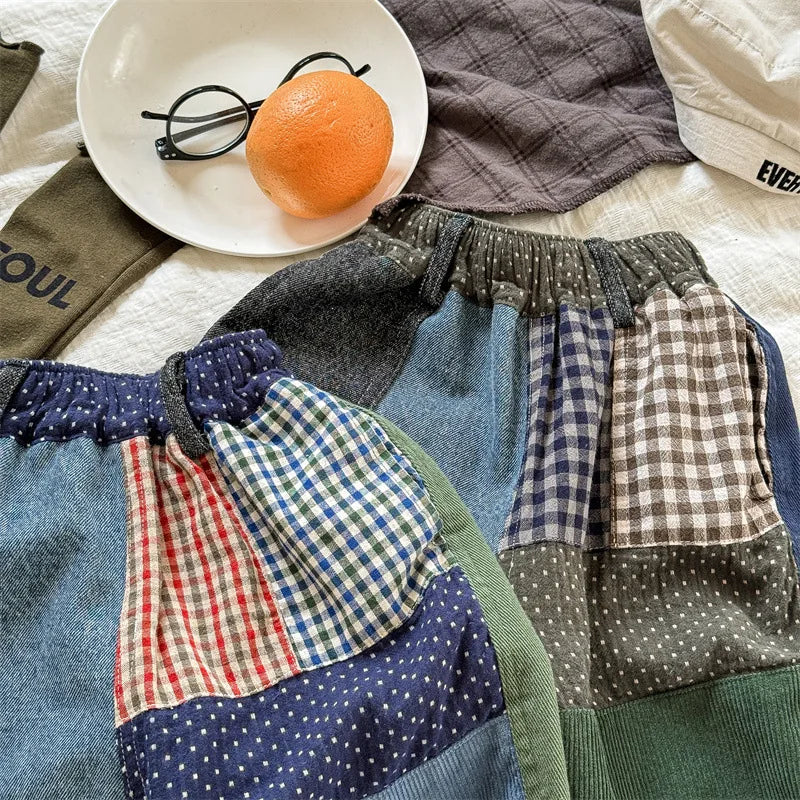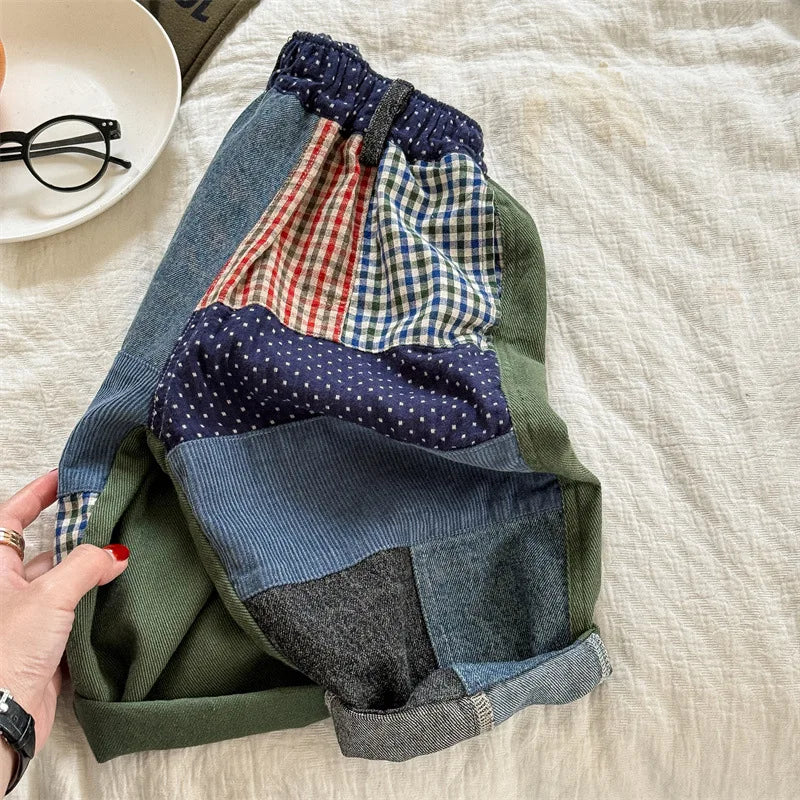 deer jonmi 2024 New Autumn Baby Boys Loose Patchwork Trousers Korean Style Toddlers Kids Casual Chic Haren Pants